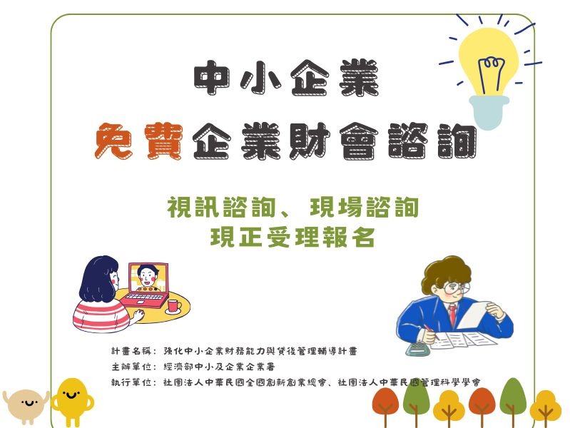 在此我們提供預約制、完全免費的諮詢服務,幫助您建立健全財務體質及會計制度、提升財務管理能力,由專業的會計師與您進行一對一的免費財會諮詢!